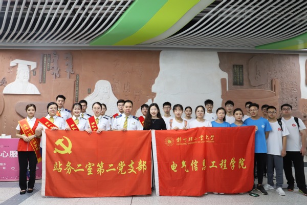 社会实践是大学生思想政治教育的一个重要环节,对于促进大学生了解社会、了解国情、增长才干、奉献社会、培养品格、增强社会责任感具有重要作用。随着郑州地铁轨道交通的不断建设与发展,使得市民出行更加方便快捷,在炎热的夏季,地铁出行成为不少市民的首选。7月11日上午8点,通过校友武杰同志的联系帮助,电气院郑州地铁红色志愿队共13人由辅导员艾怡静老师带领,在郑州地铁二号线黄河路站开展了为期一天的郑州地铁志愿活动。