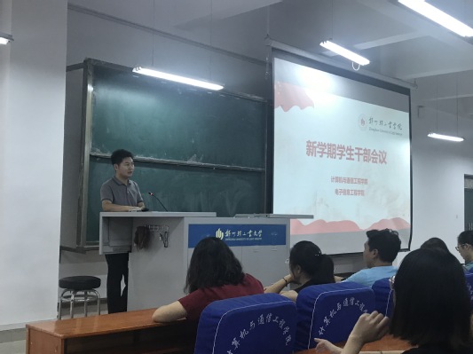 计算机与通信工程学院(电子信息工程学院)于9月6日在计算机楼217室召开了新学期全体学生干部大会。党总支副书记王艳军、分团委书记司丽娜、学工办主任孟牒等专兼职辅导员与学生干部近200人共同参加了此次会议。