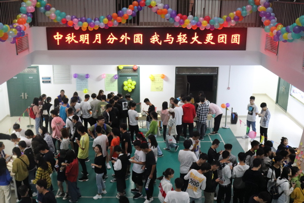 下午五点,活动正式开始,贴满灯谜的绚丽剪纸、画着月兔的桥型展板、随处悬挂的彩色气球,为计算机楼营造出浓浓的节日氛围。活动现场被小彩旗围了起来,丰富多彩的小游戏在等着老师和同学们的踊跃参与:“诗情画意话中秋”,激烈的中秋诗词PK,让学生们在了解全国各地中秋习俗的同时,感受传统节日在生活中的韵味;“活力满满传气球”,采用“背对背拥抱”的传递模式,考验参赛成员们在接力赛中的技巧和能力,提高了成员间的默契和配合;“奇思妙想猜灯谜”,风格各异、内容丰富、难易适中的谜语,既具娱乐性,又具知识性,生动有趣,让大家乐中有学;“心灵手巧包月饼”,劲道柔软的面饼、口味繁多的馅料、形状各异的模具,在学生手中诞生出美味的冰皮月饼,让学生体会到了亲自动手的成就感和幸福感。在这个以“赏月、团圆”为文化符号的传统节日里,一边感受秋风的凉爽,一边品尝月饼的甜香,笑容萦绕在每个老师和同学的脸庞,活动在大家依依不舍的情绪中圆满结束。
