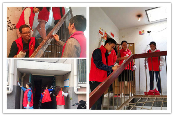 活动伊始,“常青数”志愿服务队50余人,按所在党支部分为5组,穿着志愿者红马甲,肩扛扫帚,手拿水壶,排着整齐的队伍,前往轻大社区开展大扫除活动。志愿者们在各楼层清理墙面及楼梯小广告,打扫卫生死角,捡拾垃圾,清理路边杂物等,干得热火朝天,经过近三个小时的劳动,把小区打扫得干干净净。美丽的环境,无私的奉献,受到了广大居民群众的一致好评。