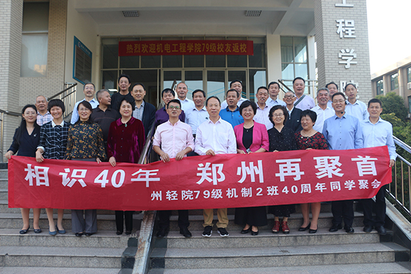 “相识40年,郑州再聚首”,机电工程学院79级校友荣归母校,于2019年9月21日下午在东风校区西三楼215会议室举办座谈会,纪念入学40周年。我校副校长王新杰、校友总会办公室主任卢中宁应邀参加活动,与返校校友共同庆祝。座谈会由机制79级校友、教务处张东初处长主持,我院党总支书记蒋玮、副书记孙琳和老教师代表参加座谈会。