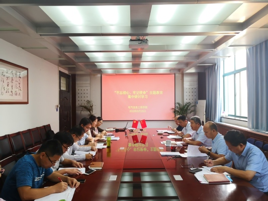 为贯彻落实我校“不忘初心、牢记使命”主题教育动员会和《中共郑州轻工业大学委员会“不忘初心、牢记使命”主题教育实施方案》文件要求,电气信息工程学院于9月26日、27日,在西二楼301会议室开展为期两天的“不忘初心、牢记使命”主题教育集中研讨学习,学院班子成员、全体支部书记参加会议。会议由学院党总支书记高建奇主持。