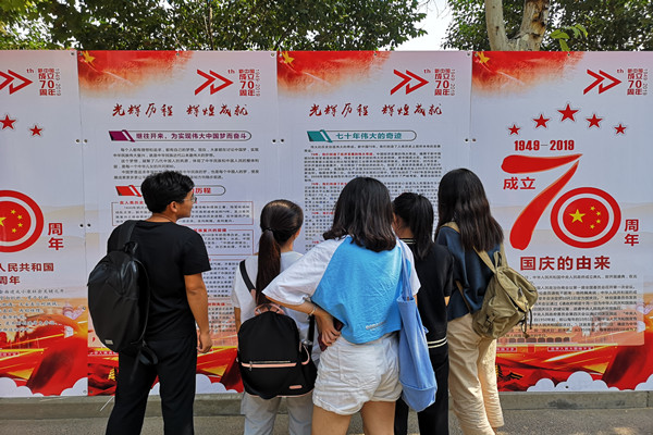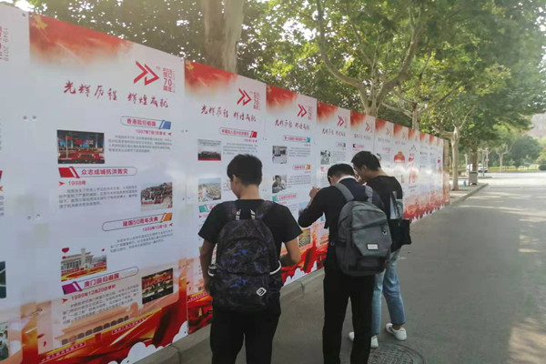 为庆祝新中国成立70周年,回顾祖国的光辉历程,激发全校学生的爱国情怀,由校工会主办、政法学院分工会承办的“热烈庆祝中华人民共和国成立70周年成就展”在科学校区展出。