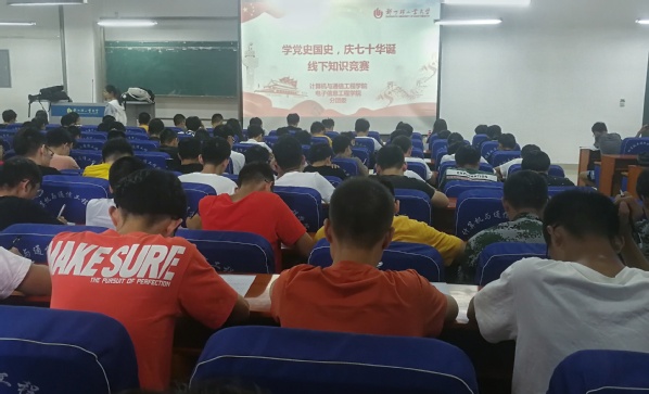 为深入贯彻落实全国全省教育大会精神,推进“不忘初心、牢记使命”主题教育的开展,激发广大师生知史爱党、知史爱国情怀,9月27日中午,计算机与通信工程学院(电子信息工程学院)在计算机楼217举行了“学党史国史,庆七十华诞”网络主题教育暨党史国史知识竞赛活动。