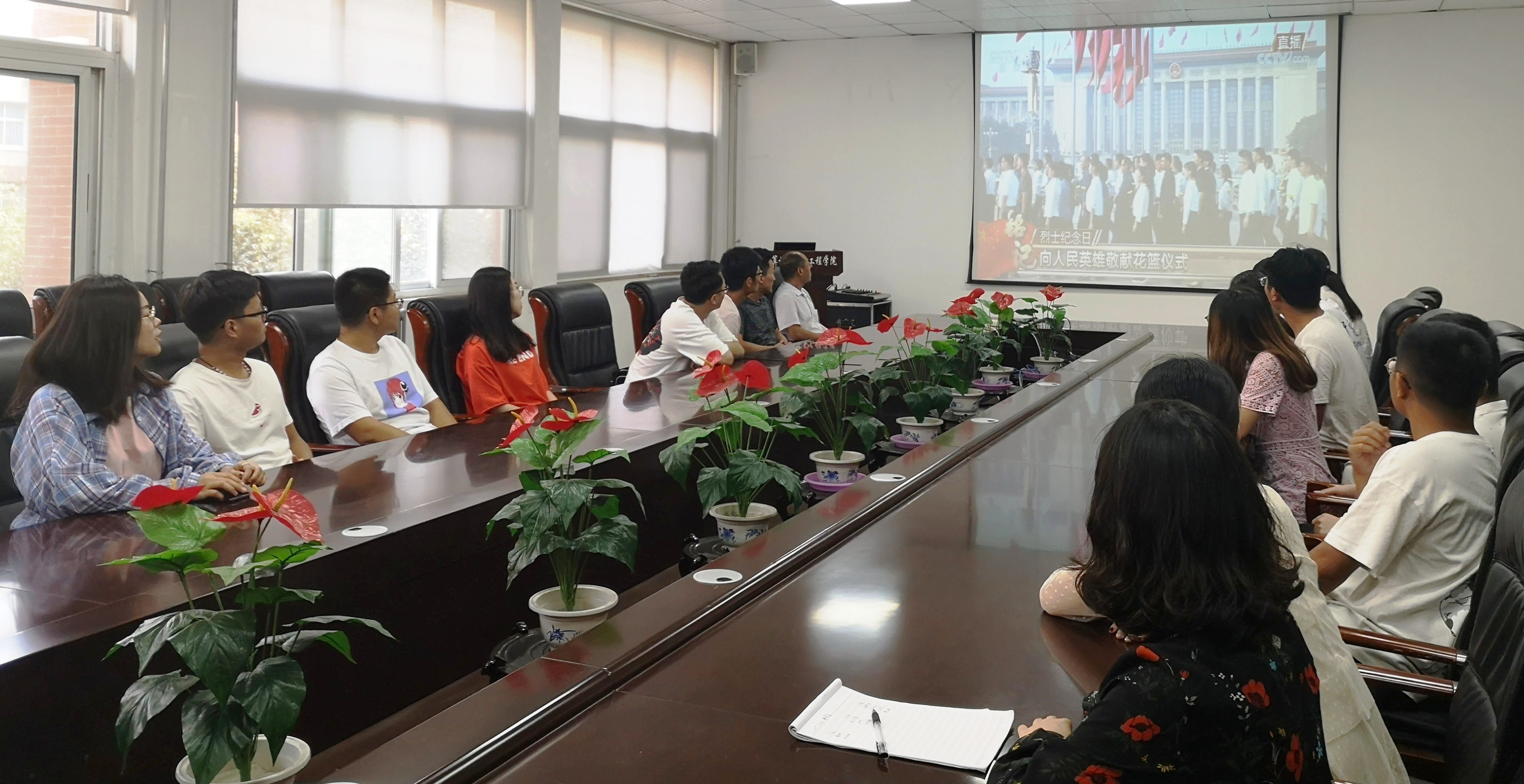 今天是中华人民共和国烈士纪念日,上午10点,计算机与通信工程学院(电子信息工程学院)研究生和本科生党员、发展对象和积极分子在计算机楼213会议室共同观看了习近平等党和国家领导人同各界代表一起,在天安门广场向人民英雄敬献花篮仪式,研究生支部书记赵进超老师组织并主持了此次活动。