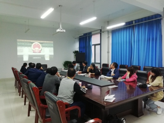 吴诗德同志首先介绍了本次集中学习活动的主要内容,同时强调:党员同志在“不忘初心、牢记使命”主题教育学习活动中要带着情感学,带着责任学。在学习中接受思想政治洗礼,在学习中增加干事创业担当。随后,大家通过学习强国平台集中观看视频学习。学习内容包括:《义勇军进行曲》的创作背景及成为中华人民共和国国歌的曲折过程;五星红旗图案的设计过程和象征含义;中华人民共和国名称的由来等党史和新中国史。
