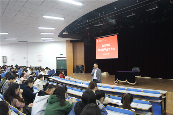 为促进我院毕业生顺利就业,确保我院毕业生工作的有序开展,2019年10月15日下午3:00,政法学院在活动中心208室召开了2020届毕业生大会。政法学院党总支副书记许海龙老师、辅导员老师以及全体2020届毕业生参加了本次大会。