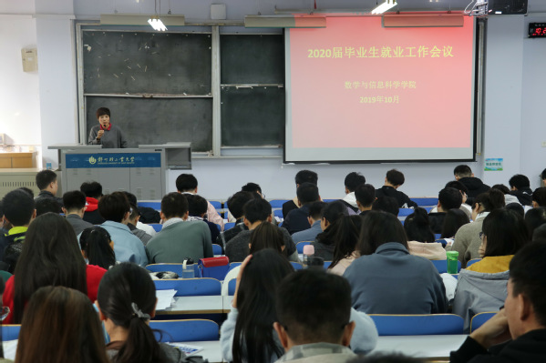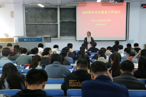 为进一步做好2020届毕业生就业工作,引导和帮助毕业生树立正确的择业观和就业观,10月17日上午10:00,数学与信息科学学院在东一楼218教室召开2020届毕业生就业工作会议。学院党总支副书记王燕翔、就业专职辅导员张智勤及2020届全体毕业生参加了会议。