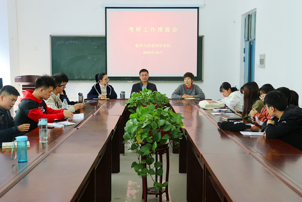 奋力拼搏,助力考研梦想;满怀激情,凝聚青春魅力。为进一步加强同学们对研究生考试的认识,了解前沿的就业形势,增强考研斗志。10月17日,数学与信息科学学院在东一楼310会议室召开了2020届学生考研工作推进会。学院党总支副书记王燕翔、副院长黄士国、就业专职人员以及2016级考研的在校生参加了会议。