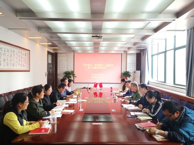 电气信息工程学院于10月17日、18日在西二楼301会议室开展“不忘初心、牢记使命”主题教育第二次集中学习研讨,学院领导班子以及全体支部书记参加。党总支书记高建奇主持学习研讨。