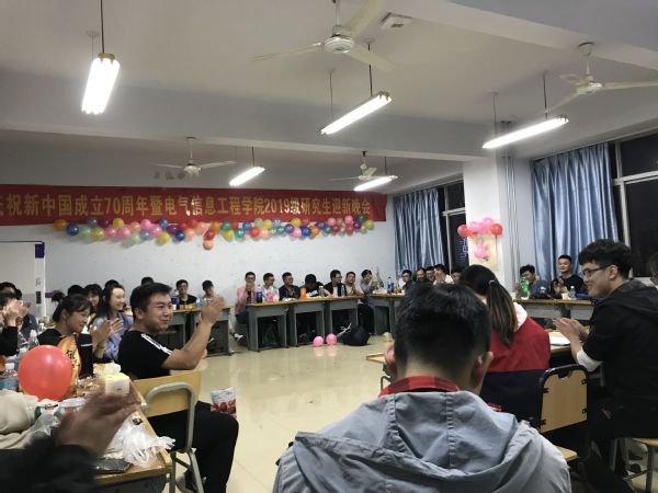 为庆祝新中国成立70周年,为让研究生新生更好的适应研究生生活,经一个多月精心筹划准备,2019年10月20日晚,电气信息工程学院研究生会在教三楼812举办了庆祝新中国成立70周年暨2019级研究生迎新晚会。院研究生会全体成员以及60余名19级电气信息工程学院研究生参加了本次活动。