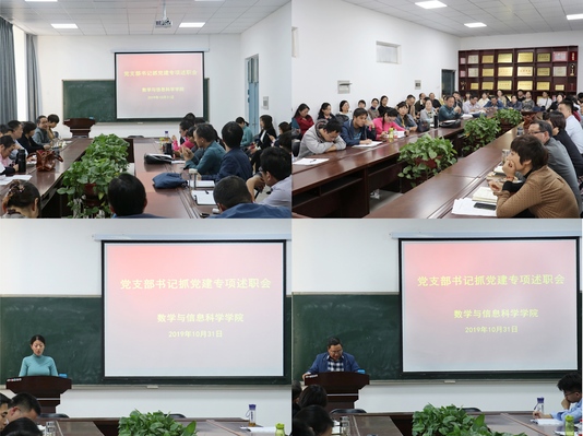 为进一步提升党支部书记履责意识、履职能力,强化基层党组织的战斗堡垒作用,贯彻落实“不忘初心、牢记使命”主题教育重点工作任务,数学与信息科学学院党总支于10月31日下午在东一楼310会议室召开党支部书记抓基层党建专项述职考核评议会议。会议由党总支书记郭伍常主持,学院党总支委员、各支部书记和全体师生党员参加述职会。
