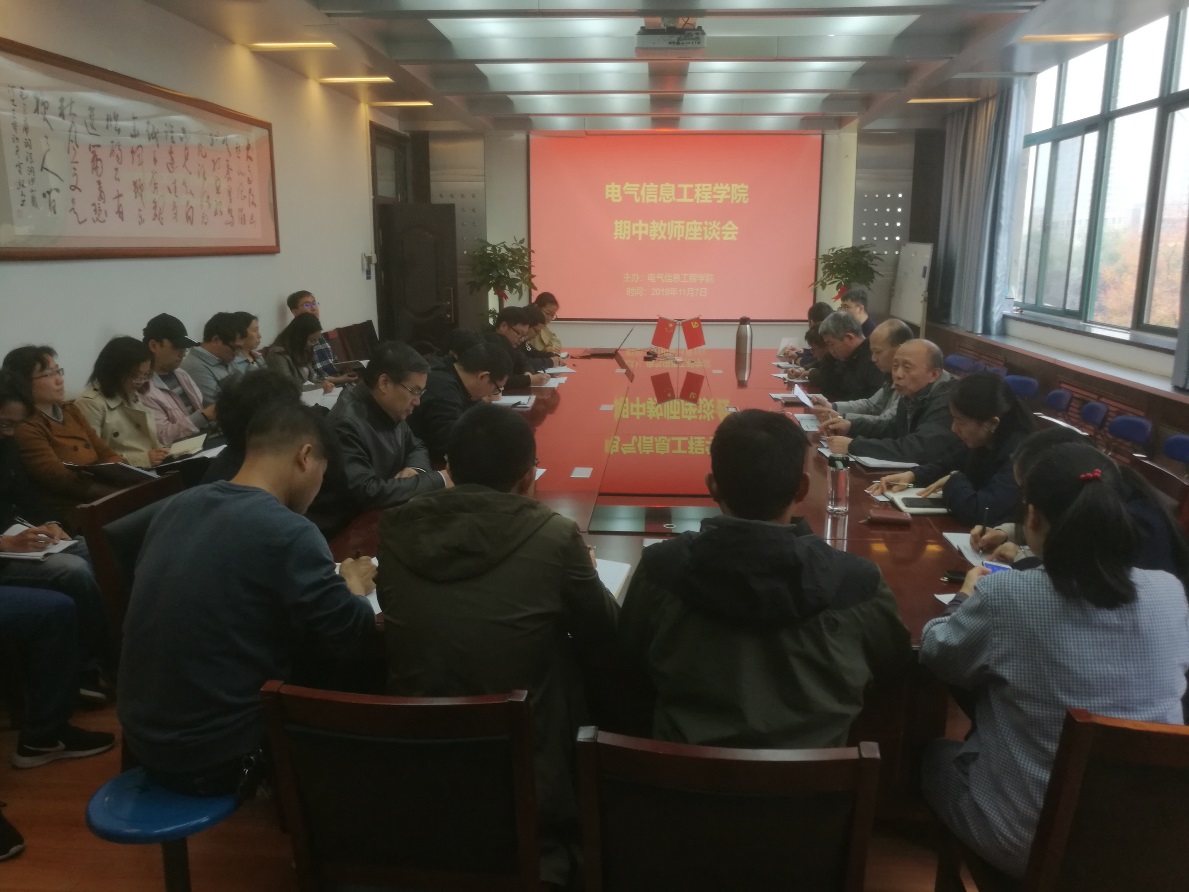 11月7日下午4:00,电气信息工程学院在西二楼301召开期中教学检查教师座谈会。学院班子成员、督导组成员、教学质量监控员、各基层教学单位主任副主任、各课程组负责人等30余人参加了座谈会,会议由党总支书记高建奇主持。