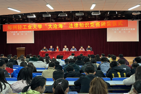会上,校团委副书记王银峰老师宣读了2019年“大沧海”法律知识竞赛表彰决定。本次活动在大沧海律师事务所的大力支持下,在校党委宣传部、学工部(处)、校团委的指导下,政法学院积极准备、广泛宣传,我校广大学生投入了高昂的热情,全校共1000余位同学参加比赛。经过笔试、复试两个阶段的全面考核,计算机与通信工程学院高雅琪等291位同学分别获得非专业组特等奖和一、二、三等奖,曾嘉靖等20位同学分别获得专业组一、二、三等奖和优秀奖。