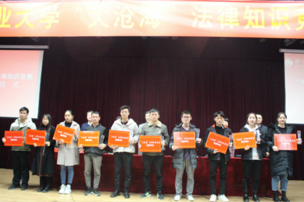 为弘扬社会主义法治精神,树立社会主义法治理念,切实提高大学生的法治意识,2019年“大沧海”法律知识竞赛颁奖仪式于11月28日下午3:00在大学生活动中心208隆重举行。大沧海律师事务所主任袁二方、政法学院党总支书记王林焕、院长刘春兵、校团委副书记王银峰、党总支副书记许海龙、政法学院法学系主任张威等应邀出席了大会。