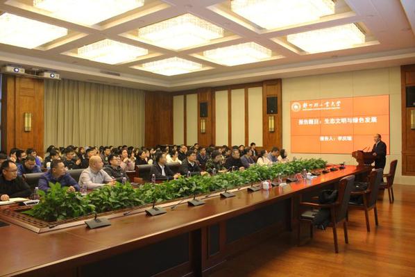 12月2日下午,应我校邀请,中国生态文明研究与促进会执行副会长李庆瑞来校作了“生态文明与绿色发展”学术报告。报告会在科学校区双创中心第一会议室举行,方少明副校长主持报告会。学校相关专业教师、硕士研究生及部分本科生参加了报告会。