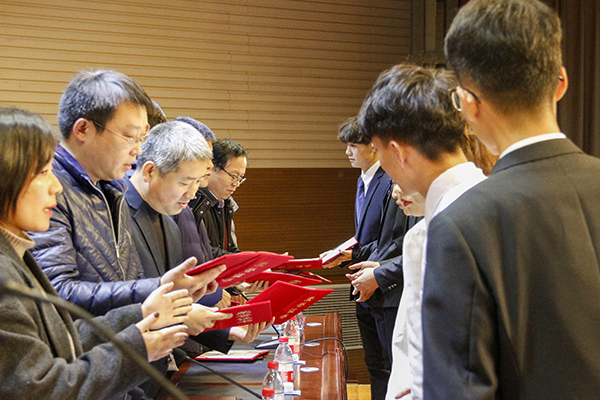 仪式上党总支副书记宋文军老师宣读了学校的表彰文件,随后钟焕坤校友以及学院党政领导为奖学金获得者颁发了荣誉证书,并且鼓励他们在未来的生活中,勉励自己,更加努力学习,并且积极为学校做出奉献。2017级学生陈祥纬和2019级学生程航代表奖学金获得者发表感言,他们表达对钟焕坤校友和学院的感激之情,表示自己会努力学习,勤奋工作,在现在和以后为学院做力所能及的事情,为传承校友情谊做贡献。紧接着钟焕坤先生回忆了自己的轻大生活,表达对母校感激之情,并且讲述了自己的人生经历,创业之路,为同学在未来的路途上所遇到的一些困难,提出了自己独到的解决方法,为同学们的未来旅途上点亮了一盏灯;并且以自我为例,勉励同学们在未来的生活中要更加勤奋的学习,打牢知识基础,锻炼实践能力,并且跟随时代步伐,前往实验室学习,了解新知识,明确自己的目标,为自己心中所想的去努力奋斗。