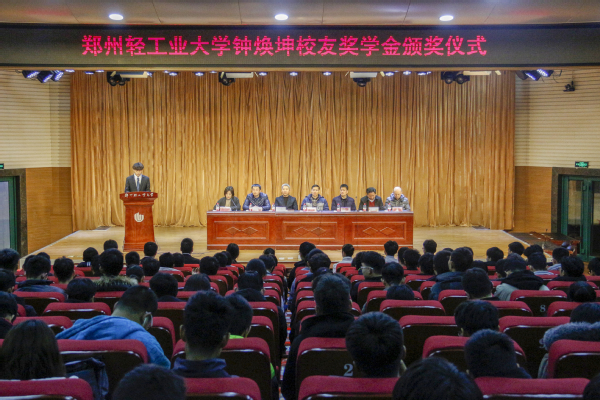 2019年12月19日,郑州轻工业大学焕坤校友奖学金颁奖仪式在教一楼107室举行。电气信息工程学院91届校友、广东省肇庆市高要金田电热元件有限公司董事长钟焕坤先生,校友总会办公室卢中宁主任,学院党政班子、钟焕坤校友奖学金获得者及学生代表参加仪式。