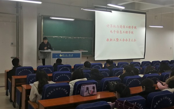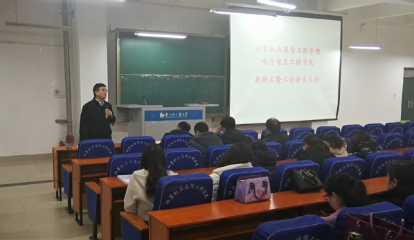 12月19日下午,在计算机楼217召开计算机与通信工程学院(电子信息工程学院)教职工暨工会会员大会。学院全体教职工参加大会,会议由学院党总支书记黄道颖主持。