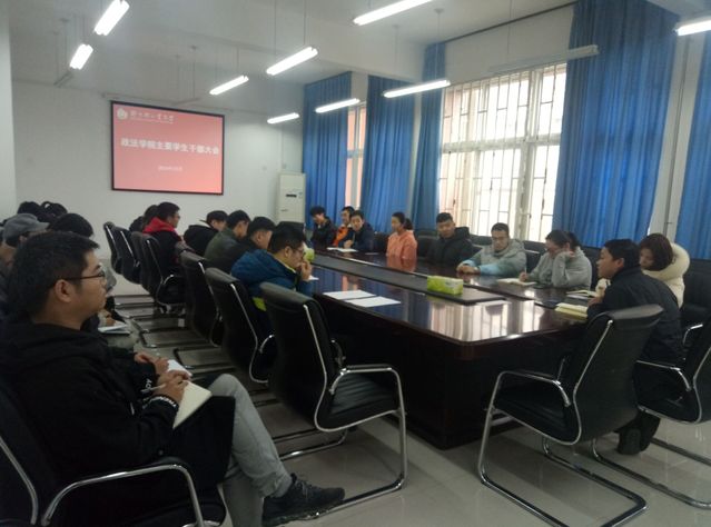为做好期末学生工作安排,进一步加强学院安全管理和考前诚信教育,政法学院于12月24日下午3点在政法楼212会议室召开了期末学生干部会议,会议由系党总支副书记许海龙主持,全体辅导员及各专业班级班长和团支书参加了本次会议。