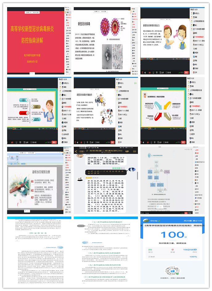 活动中,各班团支书首先带领同学们线上集中学习了《高等学校新型冠状病毒肺炎防控指南》,通过学习了解了新型冠状病毒肺炎诊疗知识和高校疫情防控工作体系,掌握了传染病基础知识、重点学习了开学返校前的准备工作以及返校途中返校后的防护指引等方面内容。随后各班组织同学们参与了新冠肺炎防控知识线上问答,旨在检查同学们对新冠肺炎防控知识的掌握情况,增强同学们对新冠肺炎防控指南的学习效果。同学们表示,此次活动增加了对新冠肺炎防控知识的了解,对于开学前、返校途中和返校后的防护措施,如何确保自身安全方面内容有了更明确的认知。