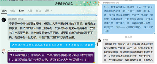 为推进大学生校园文化建设,丰富课余文化生活,计算机与通信工程学院(电子信息工程学院)开展“远方去不了,我们还有书”读书分享交流会,全院师生踊跃参与。