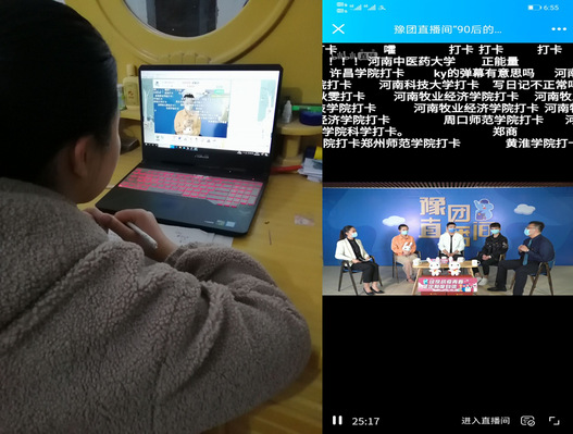本次网络直播是一次特别的主题团日活动,战“疫”一线人员、社区志愿者、河南“小汤山”医院建设者以及省青年五四奖章获得者都做客直播间,与大家分享他们的故事。无论是疫情防控一线的救死扶伤,还是为群众排忧解难,都离不开过硬的能力本领、优良的工作作风和无私奉献的高尚品质。在疫情期间,作为90后代表的他们不畏艰险、冲锋在前,用实际行动彰显使命和担当,成为了抗击疫情的中坚力量。同学们更是被奋战在抗疫一线的90后英雄们所感动,立志要学习英雄们在国家危难之际不畏艰险、挺身而出、果敢担当的精神,学习他们在面对困难时勇挑重担、坚守信仰、不忘初心的优秀品质。