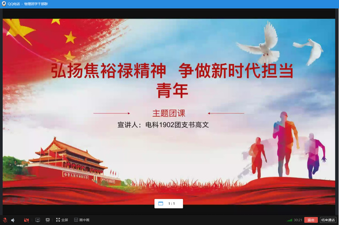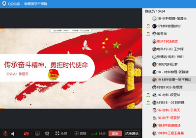 为深入学习习近平新时代中国特色社会主义思想和党的十九大精神,激发基层团组织和干部活力。4月30日下午,物理与电子工程学院通过QQ群平台举办了“绽放战疫青春•坚定制度自信”线上微团课比赛,学院各班团干参加了此次活动。