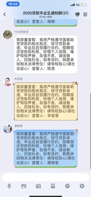 会议开始,韩老师对毕业生详细解读了国家助学贷款的还款流程、还款须知和注意事项,并提醒学生助学贷款情况将录入学生本人信息至个人征信系统,告诫大家要严格履行还款义务,合理安排还款时间,为自己的诚信记录负责。接下来,她对毕业生提出三点要求,首先希望毕业生谨记诚信之准绳,避免因不良记录带来的个人诚信问题,影响未来发展;其次提醒毕业生今后立足社会,要诚信做事,脚踏实追逐理想;最后希望毕业生做到学高身正,传递诚信品德,为学弟学妹树立良好形象,为学校学院树立模范榜样。最后全体贷款毕业生展开线上诚信宣誓。