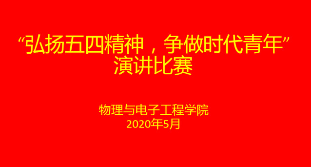 为继承和发扬“五四”精神,展现当代大学生的青春风采。5月18日下午,物理与电子工程学院组织开展了“弘扬五四精神,争做时代青年”演讲比赛。