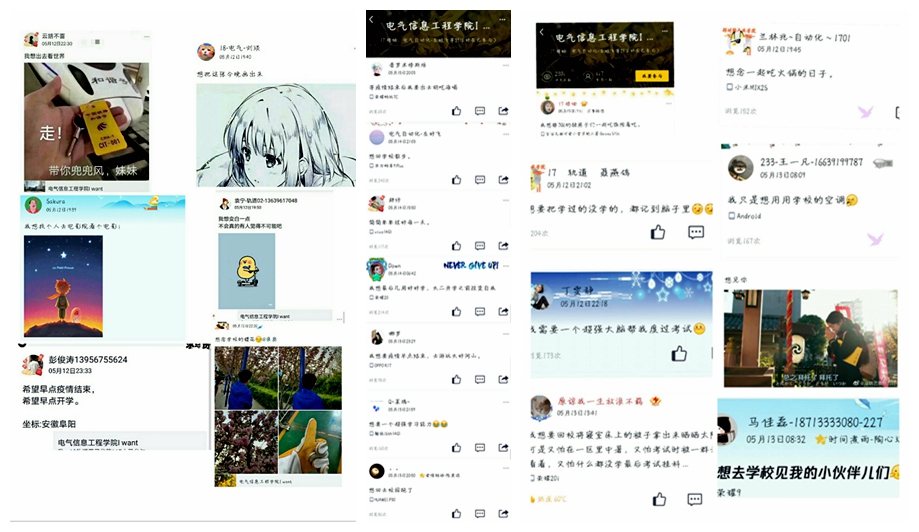 2020年5月,电气信息工程学院开展线上“I want”创意文案话题活动。全院同学积极参与,线上畅所欲言,热烈互动。
