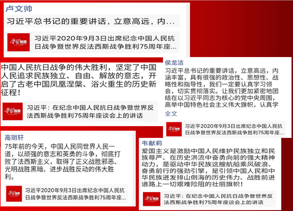 学院本科及研究生同学利用课余时间在宿舍、实验室、禹州实训基地学习了习近平总书记在纪念中国人民抗日战争暨世界反法西斯战争胜利75周年座谈会上的讲话精神。在学习结束后,同学们感触颇深,通过朋友圈、QQ空间等多种方式传递了习近平总书记的讲话,宣传红色思想,缅怀先烈。大家在传递过程中了解到过去的历史和我们现在面临的挑战。除此之外,部分本科及18、19级研究生同学还观看了纪念中国人民抗日战争暨世界反法西斯战争胜利75周年向抗战烈士敬献花篮仪式,了解了先辈们的浴血抗争,不屈不挠,为民族国家抛头颅洒热血的大无畏精神。