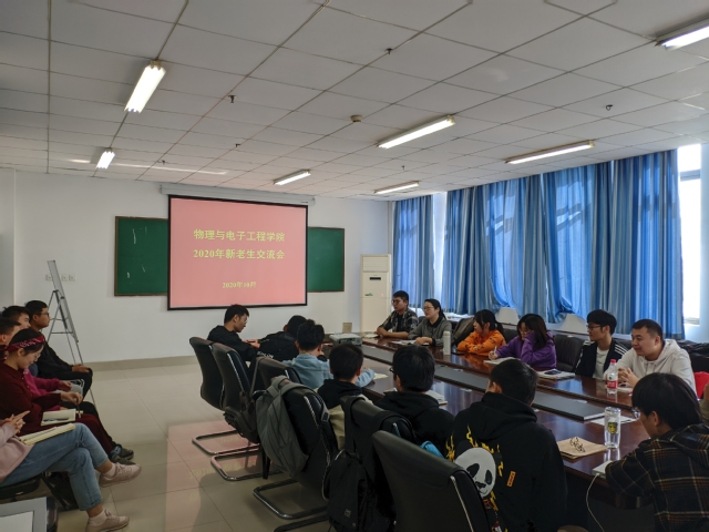 为营造研究生良好的朋辈教育氛围,解决新生在学习、生活等方面的困惑,10月21日中午,物理与电子工程学院在四教楼510会议室举行了新老生交流会,学院党委副书记李玲,研究生辅导员王伟夙,全体研究生参与此次交流会议。