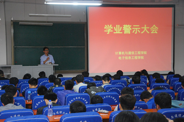 为进一步加强学风建设,引导学生转变学习态度,改善学业状态,计算机与通信工程学院(电子信息工程学院)与2018年1月4日中午12:00在计算机楼118召开学业警示大会,全体辅导员、班级学生干部、受到警示的同学参加了此次会议。