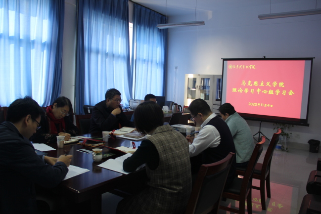 为学习贯彻习近平总书记在纪念中国人民志愿军抗美援朝出国作战70周年大会上的重要讲话,继承和弘扬伟大抗美援朝精神,11月4日上午,马克思主义学院在政法楼410召开理论学习中心组学习会,专题学习习近平总书记在纪念中国人民志愿军抗美援朝出国作战70周年大会上的讲话。学院理论学习中心组全体成员参会,会议由党总支书记马寒主持。