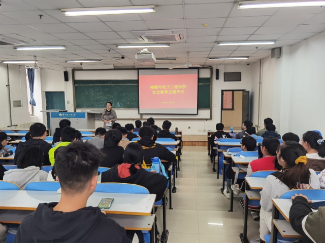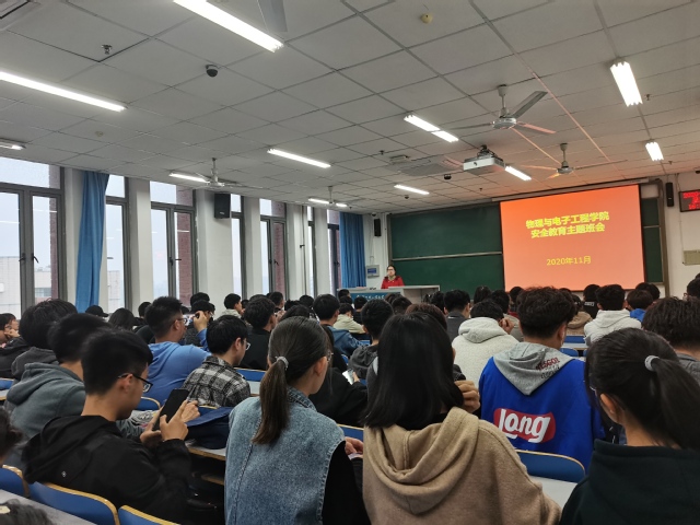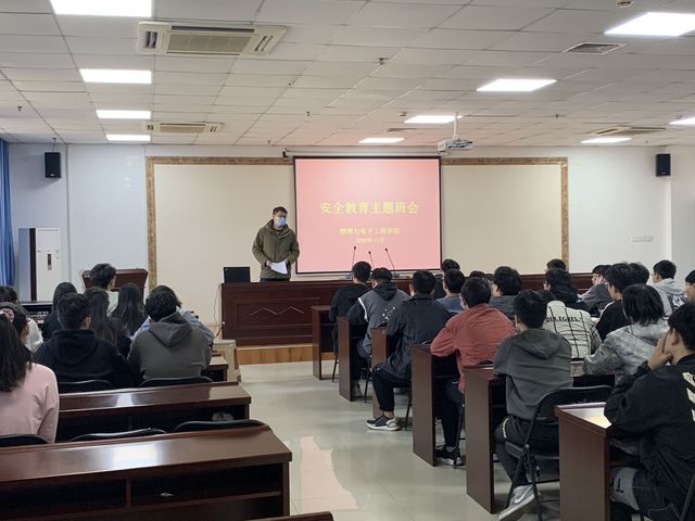 为进一步加强平安健康校园建设,教育引导学生有效防范各类安全事件、事故的发生,物理与电子工程学院于11月4-7日,分批开展了安全教育主题班会,各年级辅导员和全体在校生参与了活动。
