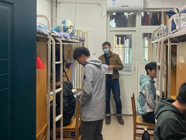走访过程中,老师们逐一排查了学生宿舍的卫生情况,重点检查是否存在违禁电器、易燃易爆品等安全隐患,与同学们进行了亲切交流,结合新冠肺炎疫情常态化防控要求和秋冬季传染病预防的知识,提醒同学们养成良好的生活习惯,定期通风打扫卫生,保持干净整洁的宿舍环境;与此同时,教育学生增强安全防范意识,注意人身财产安全,从自身做起,共同营造文明和谐的宿舍氛围。