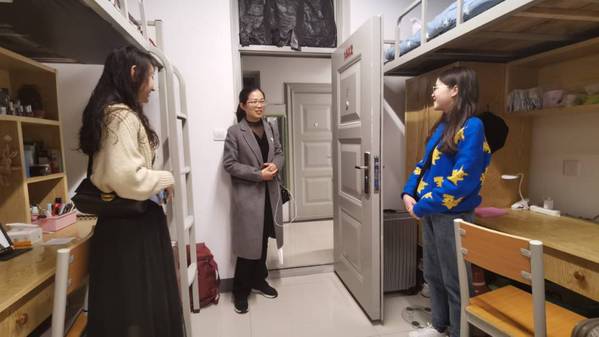 老师们逐一检查每间宿舍的卫生情况、安全用电情况,对违章电器、易燃易爆物品、裸露插座电线等安全隐患进行排查。在检查走访中,老师们与学生进行亲切交流,了解学生近期生活情况、思想状况、学习状态,并结合新冠肺炎疫情常态化防控要求和秋冬季传染病预防知识,提醒同学们开窗通风、注意宿舍卫生,养成良好的生活习惯,营造干净整洁、互助和睦的宿舍氛围,并叮嘱学生们注意人身财产安全,提高安全防范意识。