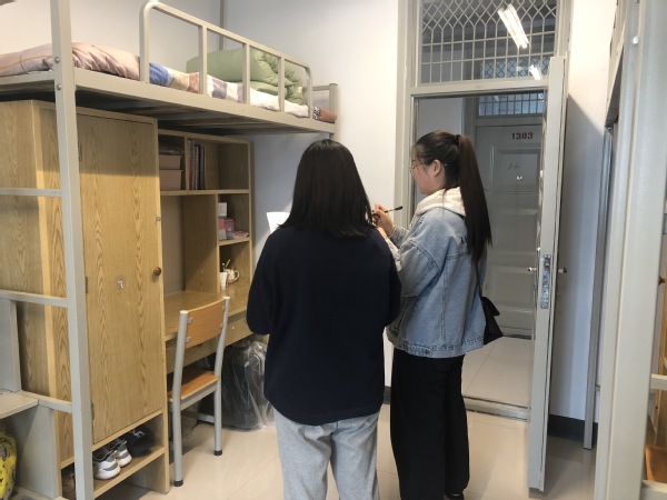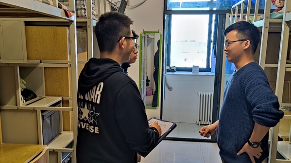辅导员老师和生活部全体同学对每一间研究生宿舍进行为期一个月的每周检查。此次重点对研究生宿舍安全及卫生状况进行检查督促,着重检查了可能出现的各种安全隐患及地面、床底、阳台拐角、卫生间等地方的卫生情况,并就宿舍的人身财产和用水用电安全等问题向同学们给出了温馨提示,同时提醒同学们打扫时要注意细节。检查结束后,大家对在检查中发现的不同问题进行了总结,对检查过程中在个别宿舍发现的安全隐患和卫生问题做了提醒并督促同学们整改提升。最后对各宿舍的得分情况进行了汇总统计,评选出了优秀宿舍并进行了奖励。