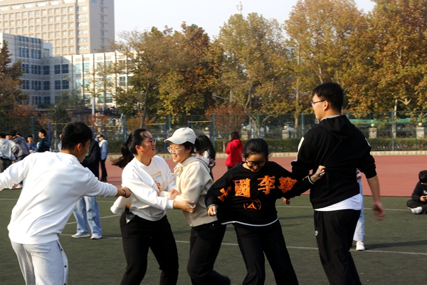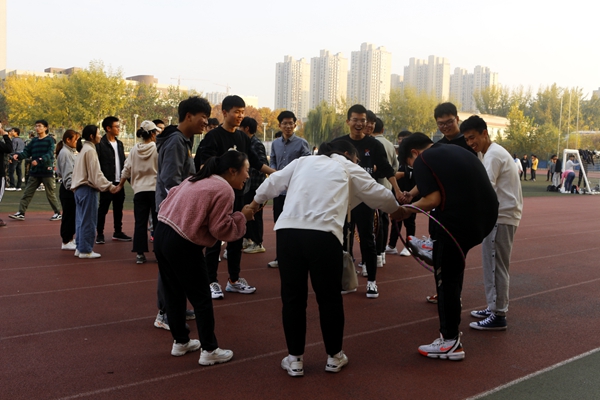 此次活动主要项目有三人两足、拔河,钻同心圆等项目,每个项目都各具特色,能够有效提升同学们的身心素质能力:“三人两足”,充满了趣味性和挑战性,加强了部门同学们的配合能力。“拔河流水”,让大家学会信任同伴、相信团队,特别是让内向的同学去放开自己,融入集体;而“钻同心圆”游戏,则需要团队精诚合作,互相帮助,互相谦让,才能取得胜利。活动以十人一组,通过小组间比赛的形式展开。各小组成员激情参与、密切配合、齐心合力,为在比赛中得分拼尽全力。比赛过程充满欢声笑语,加油呐喊声不绝于耳,处处可以感受到团队合作的力量。游戏负责人和裁判们耐心详细地为参赛同学讲解游戏规则,各司其职、公正判决,积极维护现场秩序。游戏结束后,同学们自主清理现场垃圾,维护操场干净整洁。最后,活动负责人根据分数给各小组分发奖品,大家在主席台前合影留念。本次素质拓展活动历时两个半小时,圆满结束。