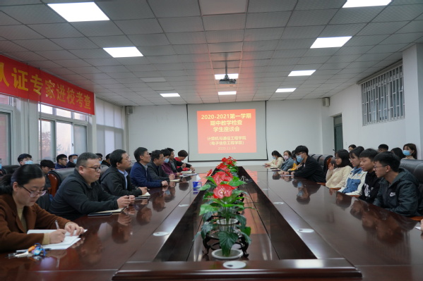 按照“以学生为中心”的理念,作为教学质量监控的重要环节,11月19日下午,计算机与通信工程学院召开了20-21(1)期中教学检查学生座谈会,与学生在学风建设、学习状态、学习效果、学习条件和资源满足情况以及教师在课堂教学、实验指导等方面进行了座谈与交流,听取了学生对教学质量提升、教学管理改进等方面的良好建议,学院领导班子全体成员、教务工作人员及2018-2020级各班学生代表参加了座谈会。会议由金保华院长主持。