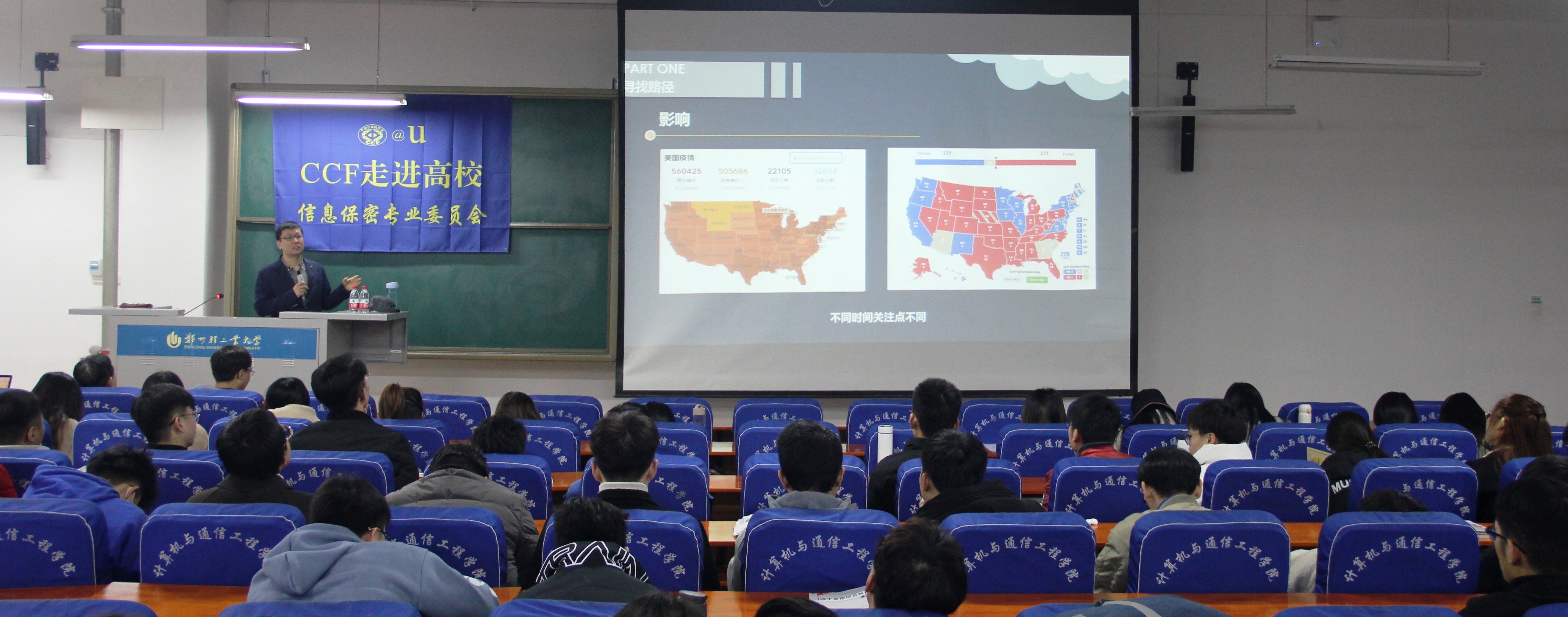 计算机与通信工程学院于2020年11月24日上午,在计算机楼217教室举办“CCF走进高校”专题学术报告会。本次报告邀请CCF专业会员、中国科学院信息工程研究所翟立东博士为研究生做《天空安全离我们还会远吗?》专题学术报告。计算机与通信工程学院副院长朱付保教授,副院长张秋闻副教授,以及全体研究生参加了此次报告会。