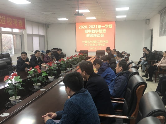 为做好教风、学风的反馈和监测,提升本科教学质量,围绕“坚持立德树人,推进三全育人,培育时代新人”的教育工作主线,计算机与通信工程学院(电子信息工程学院)于2020年11月26日下午3:30在计算机楼213会议室召开了教师座谈会。学院党委书记宋文军、院长金保华、副院长邓璐娟、学院党委副书记王艳军及各系教师代表参加了会议,座谈会由金保华院长主持。