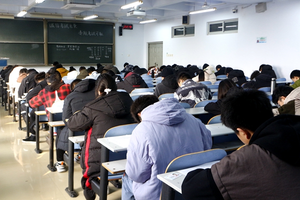 本次考试科目有高等数学和线性代数与空间几何两科,上午9:00至11:00为高等数学考试,下午3:00至5:00为线性代数与空间几何考试。考试开始,监考员宣读考试纪律,由监考员核对学生信息。考试过程中学生们安静答卷,考试纪律良好,没有出现作弊行为。辅导员、党员学长到各考场查看考试情况。考试结束,学生停止答卷,由监考员收回考卷,学生陆续离开考场。