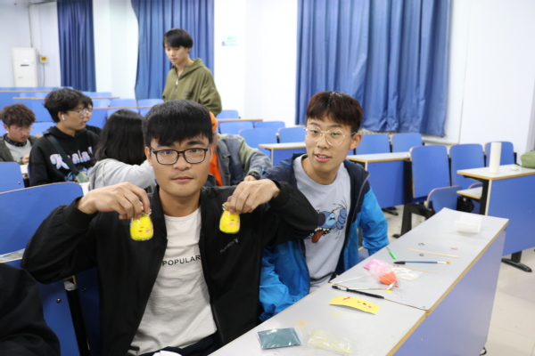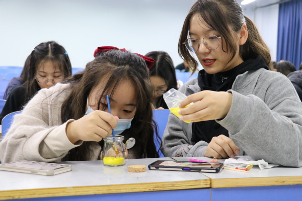 其中,面向全校的“微微星光,点亮星房”主题活动是由两个身穿玩偶服的工作人员在校园里寻找情绪低落的同学,以关心问候、愉快交谈、互相拥抱、合影留念和赠送励志小卡片的形式,缓解同学的低落情绪,用关心关爱温暖温情感染他们。随后,工作人员引导大家到事先布置好的帐篷内,邀请体验水拓画的绘制,来往学生在作画的过程中,释放了自己内心的负面情绪,感受到了来自同学间的关心关爱。