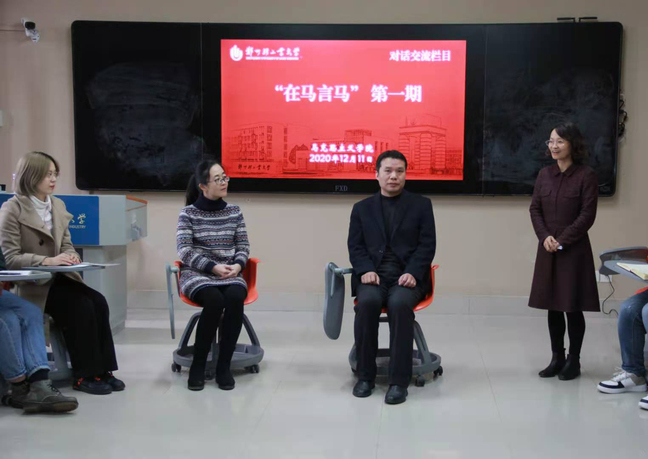 2020年12月11日上午,我校首个思想对话栏目《在马言马》在科学校区一教楼211正式开谈。栏目旨在从不同视角剖析时政热点、解释理论困惑,在对话中更深层次理解思政、理解马院。第一期的主题是《民法典》。