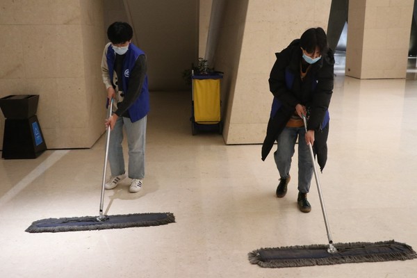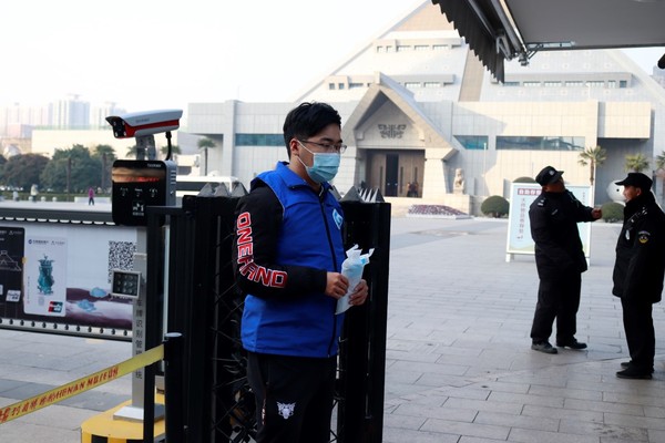 下午2:30分,志愿者们在河南博物院正门集合完毕后,分为三组分别负责场馆内的环境美化、秩序维护和防疫提醒。第一小组帮助保洁人员清理角落的灰尘,打扫展馆大厅的地面,在参观各个展馆的同时,捡拾起地上的饮料瓶和废纸屑。忙碌的身影不断引来参观人员的关注,周围游客为志愿者们投来了赞许的目光,表示要自觉将垃圾丢进垃圾桶内,保护好场馆环境。第二小组致力于营造文明的参观环境。志愿者们看到大声喧哗的游客,大方地走上前去,委婉地加以制止;注意到在展品周围打闹的小游客们,会耐心的解释不能打闹的原因。虽然全国疫情防控态势向好,但疫情防控这根弦必须时刻绷紧,第三小组的志愿者们穿梭在各个展馆内,提醒未戴好口罩的游客戴好口罩,做好防护,并为未戴口罩的游客分发口罩。