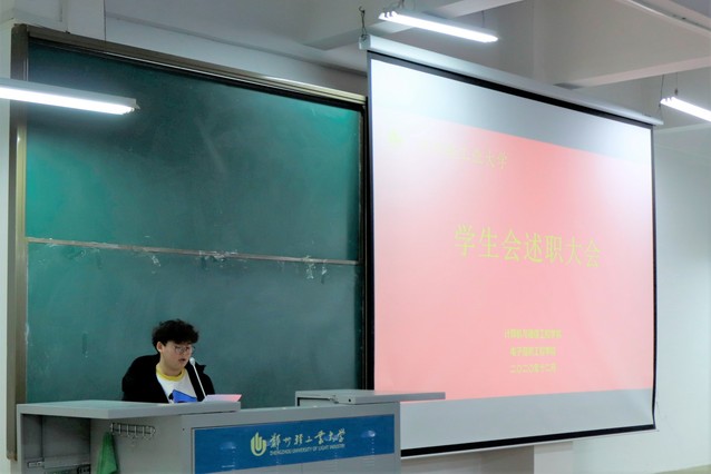 为加强学生干部队伍建设,12月24日12:30,计算机与通信工程学院(电子信息工程学院)在计算机楼118室召开了2020年学生会工作述职报告会。学院团委书记孟牒、全体专兼职辅导员及校学生会组织评议部、学生会全体成员、学院青马班成员参加此次会议。