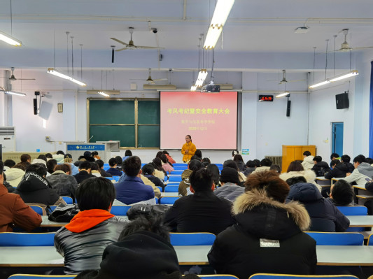 为进一步加强学院学风建设、严肃考风考纪,促进优良学风的形成,提高学生自我保护能力和安全意识,数学与信息科学学院于12月29日-12月30日分年级陆续召开了诚信考试暨安全教育主题班会。