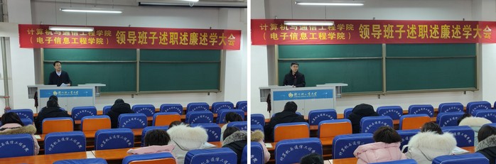2020年12月31日下午,计算机与通信工程学院(电子信息工程学院)在计算机楼217召开领导班子述职述廉述学大会。学院全体教职工参加了会议,会议由学院党委书记宋文军主持,校党委组织部闫国君老师出席了会议。
